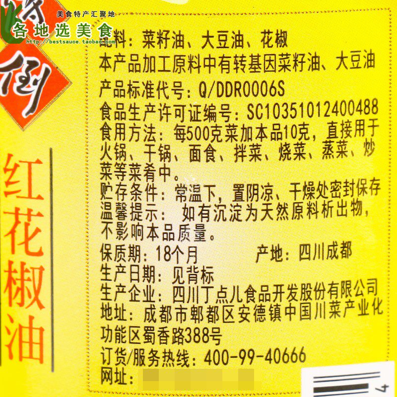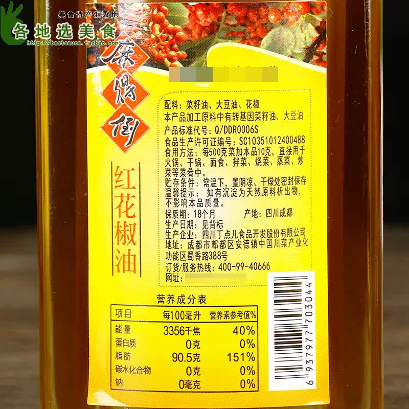 Ding Dianxian Shanghai Agent Direct Sales, обеспечение качества!Ding Dianfu Pour Hanyuan Масло из красного перца Масло.