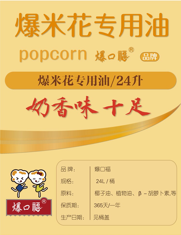 Благословения благословения, попкорн, специальное нефтяное кино коммерческое жареное молоко аромат кокосовый желтый кремовый сырье 24L