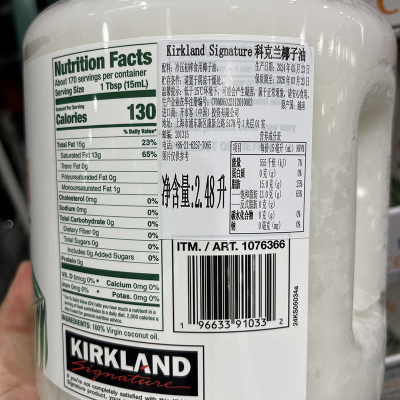 Шанхай Costco приобретает кокосовое масло Cokland Virgin -кокосовое масло 2,48 -литровое пищевое масло по уходу за волосами выпечка большие банки