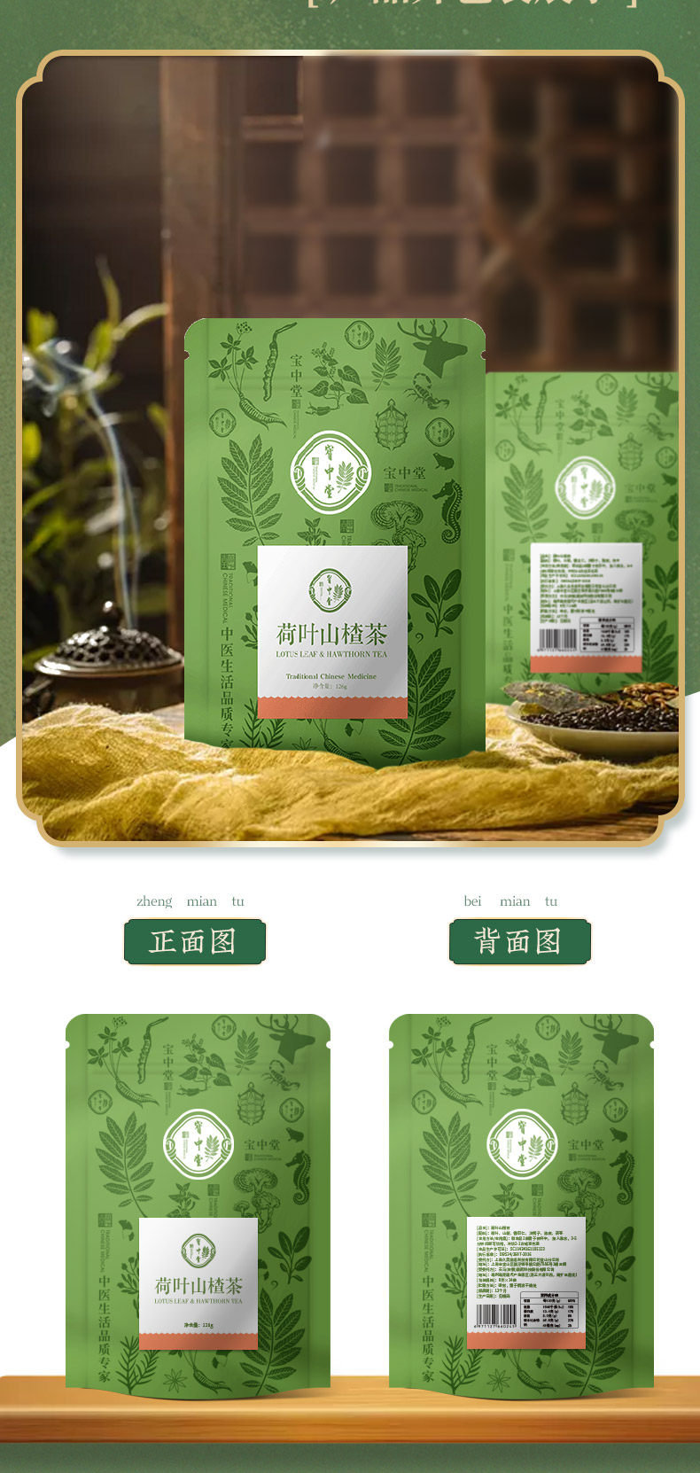 宝中堂 Лист лотоса листья боярышника комбинация чай цветок чай Ченпи Цветочный чай Большой живот мужчины и женщины чистый чай натуральный 3 сумки для 2 мешков