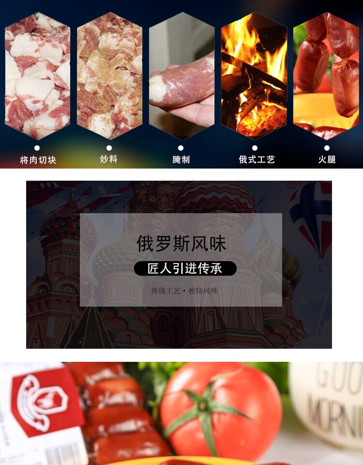 Русская аромат чистый мясо колбаса детская кишечник без крахмала наклоновое мясо открывает сумку и съешь ветчину под фирменными закусками с ветчиной
