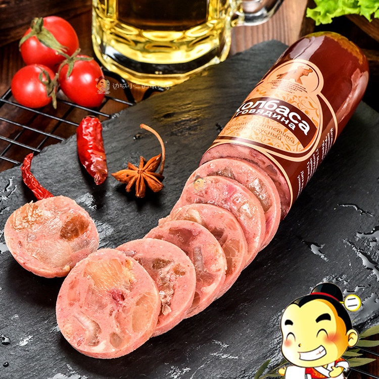 Российская со вкусом говяжья -полоса ветчины чистое мясо и колбаса копченая кишечник под вином и овощами, сражающимися с национальной кухней