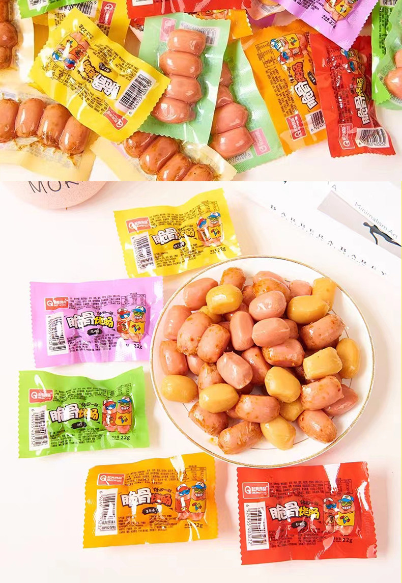 Яркая хрустящая кость на гриле кишечника, близнецы, со вкусом маленькая колбаса с несколькими сосудинами