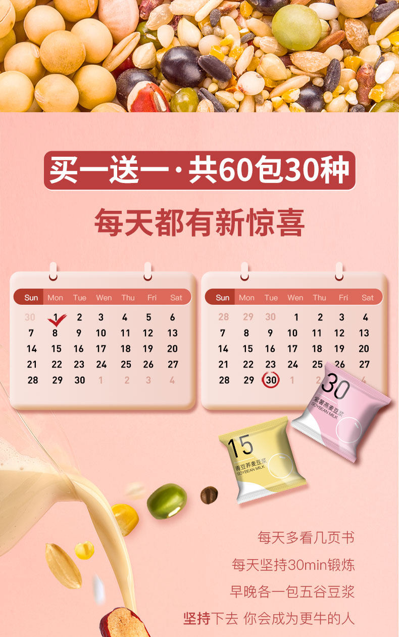 Соевое молоко, обернутое зернами и зернами. Материалы, обернутые на стеновой машине. Специальные ингредиенты для беременных женщин. Соевое молоко рисовое сырье