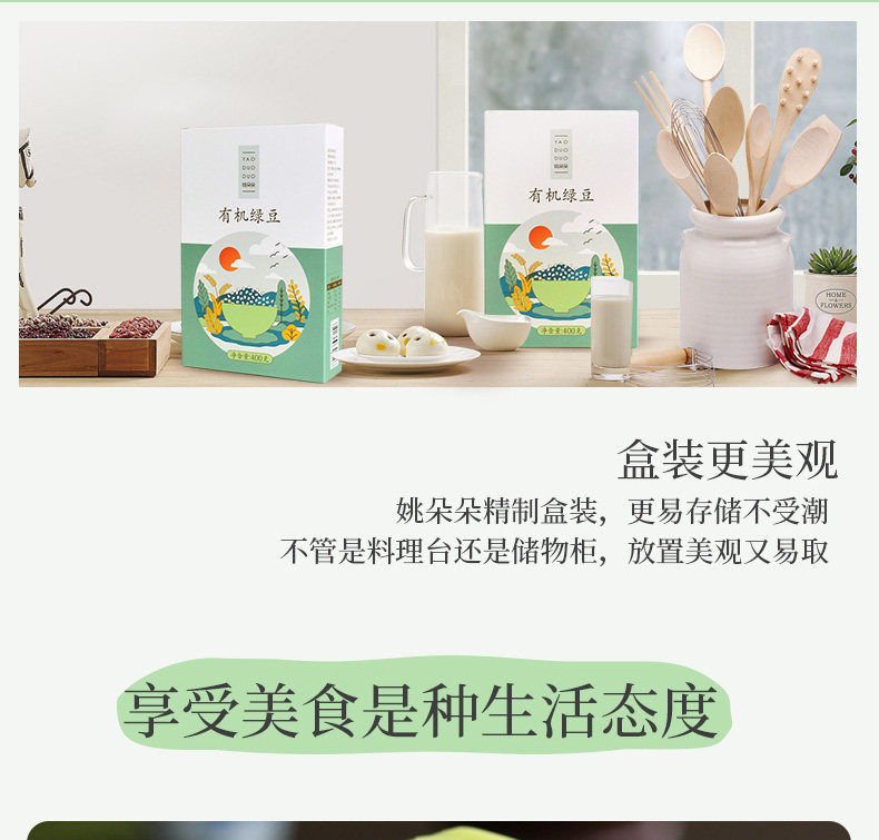 姚朵朵 Органические мунг -бобы 400GX2 коробки с вакуумными зернами можно использовать в качестве очистки пасты из фасоли мунг северо -восток.
