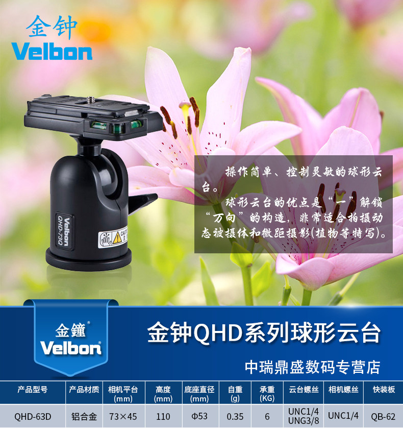 Velbon Golden Bell QHD-63D Ballo в форме SLR камеры фото переключение Diller Common Global