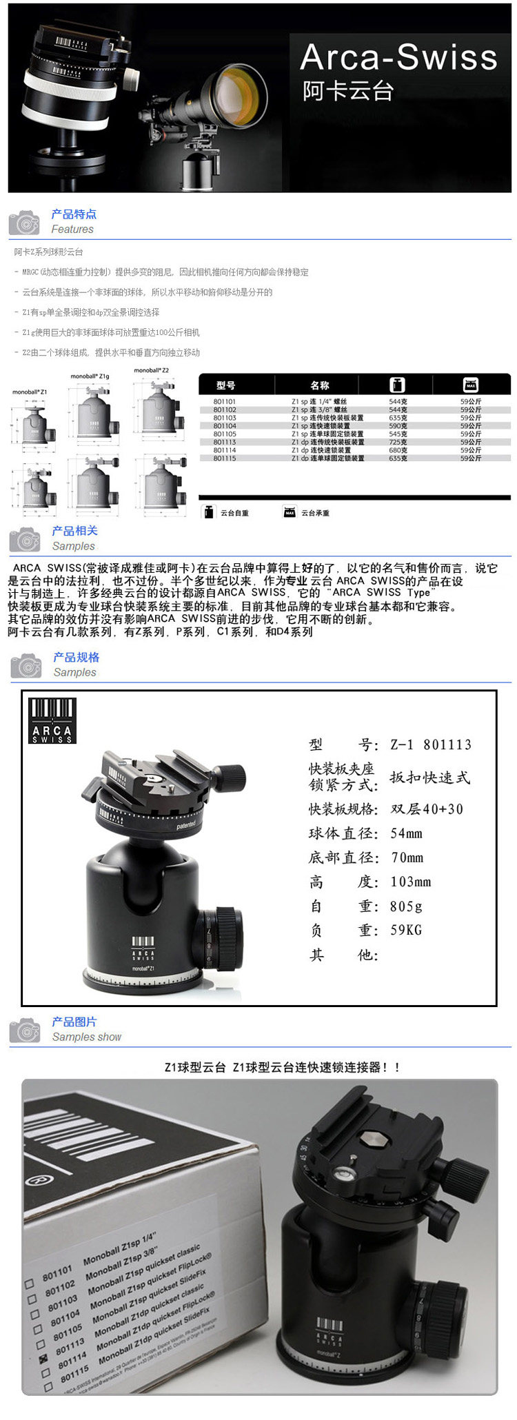 Arca-Swiss Z1+ серия 8011113/801114 Двойной панорамный контроль сферический шарнир