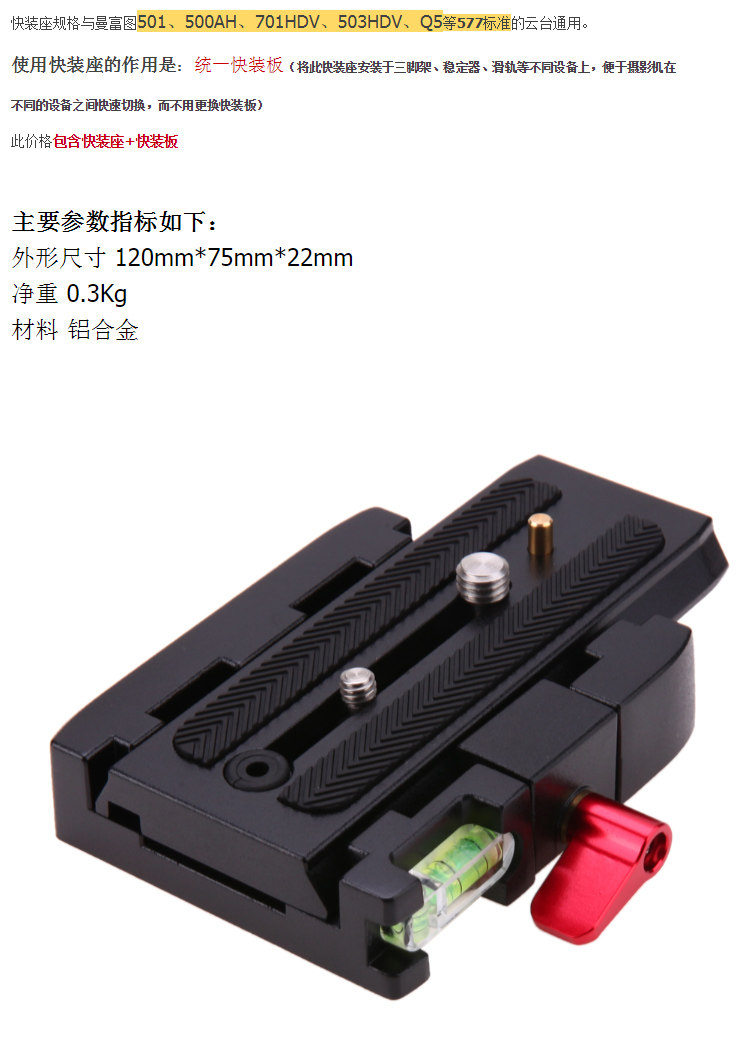 Быстро -загруженная секция базового зажима раздвижного рельса Устройство стабилизации штатива Глобальная база Universal Manfu 577 500 701