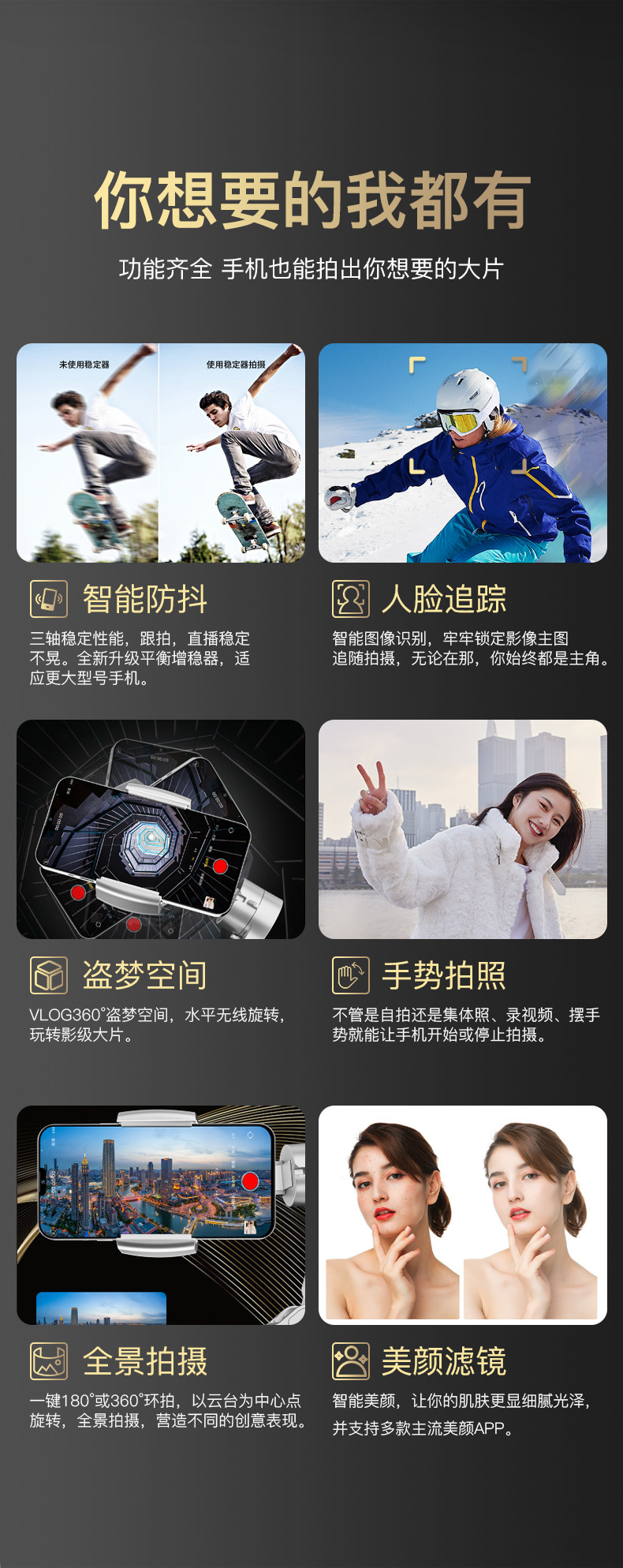 Стабилизатор мобильного телефона Gongtai Handheld Anti -Shake Shooting Vloog Three -Axis Balance Douyin Live Selfieving Three -Foot Rack подходит для селфи и видео -артефакта Xiaomi.