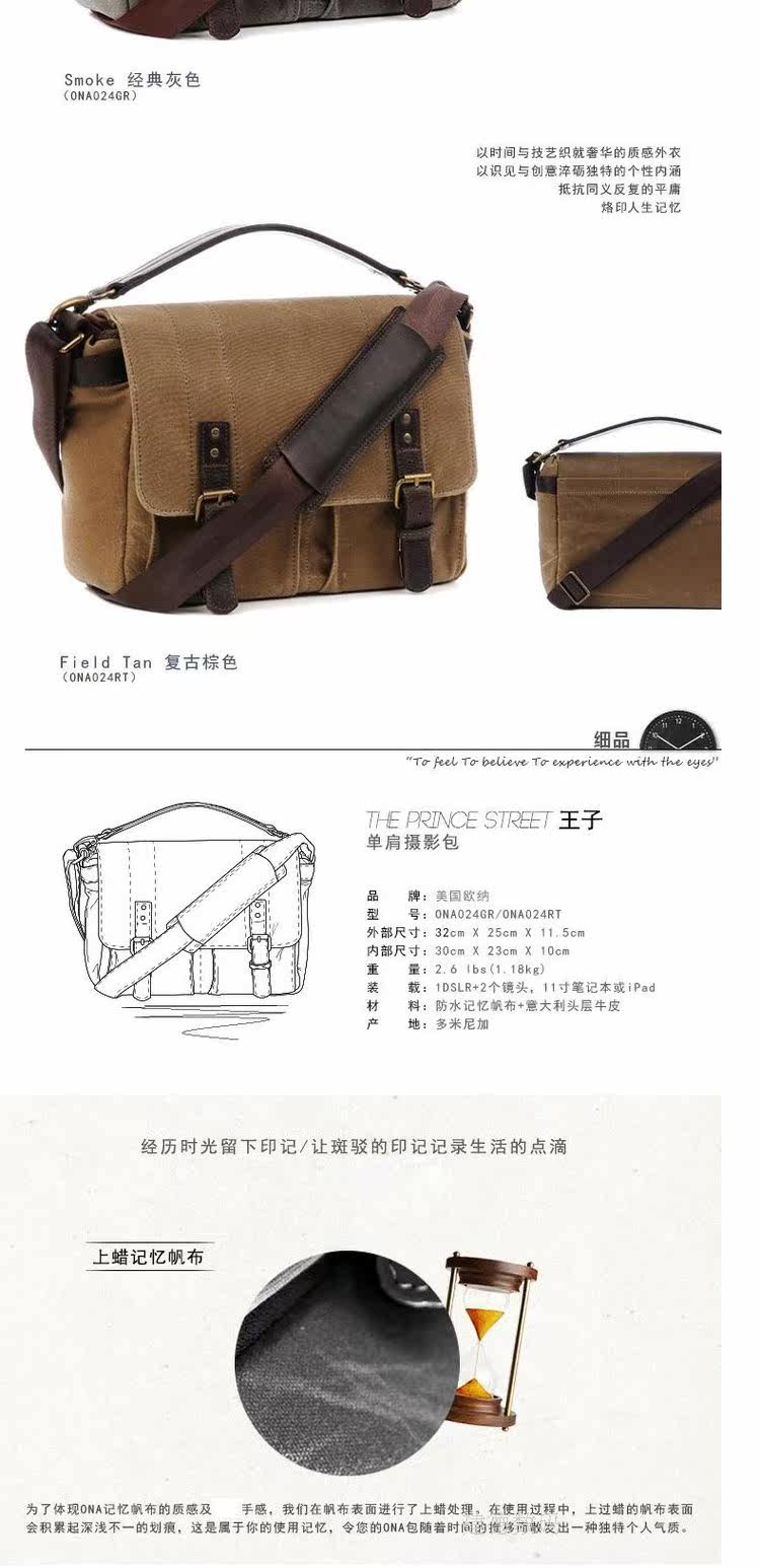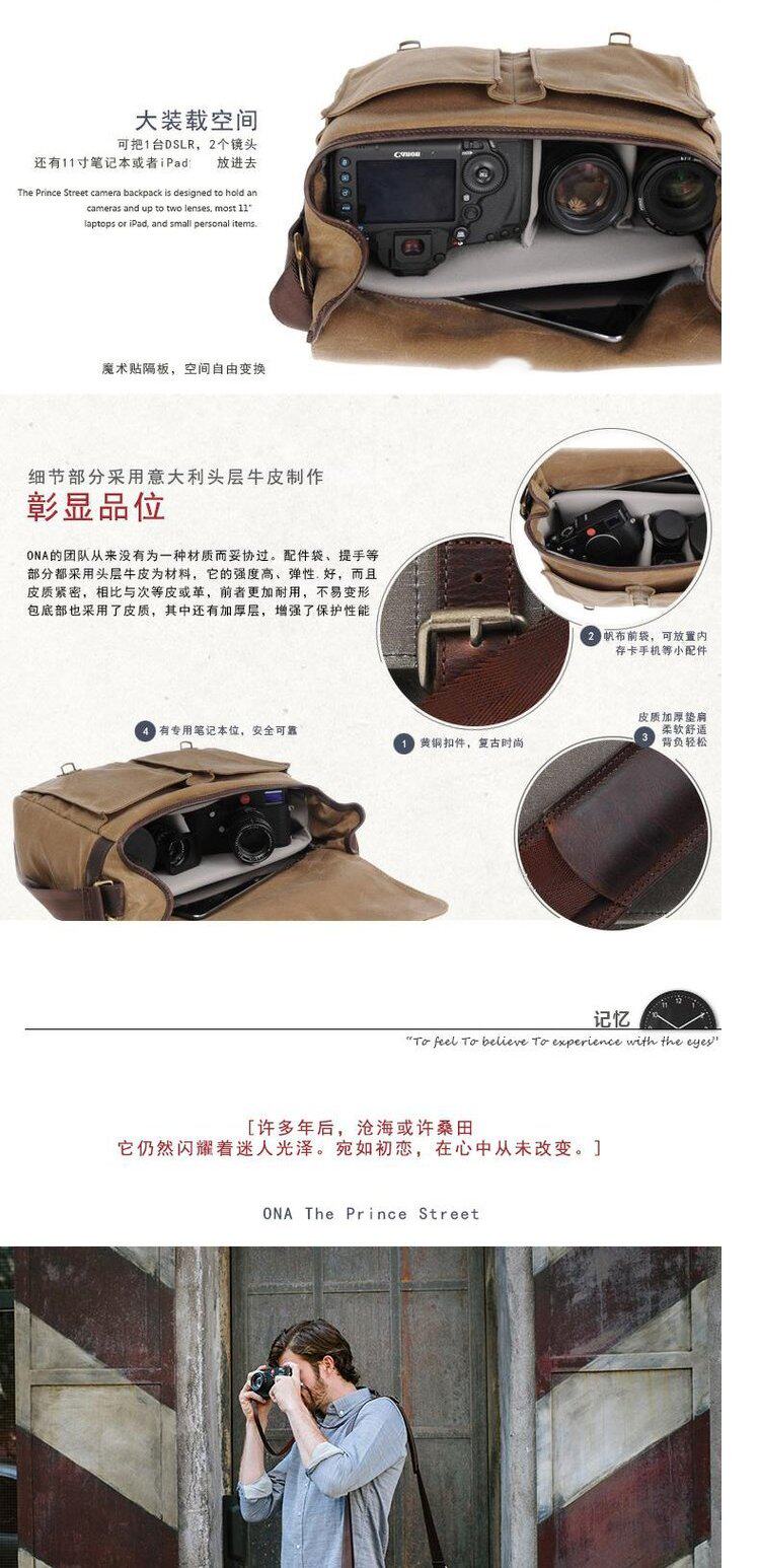 ONA Принц -стрит Принс Принц Плечо Фотография Пакет Водонепроницаемый Canvas Camera Sag Sf Genuine