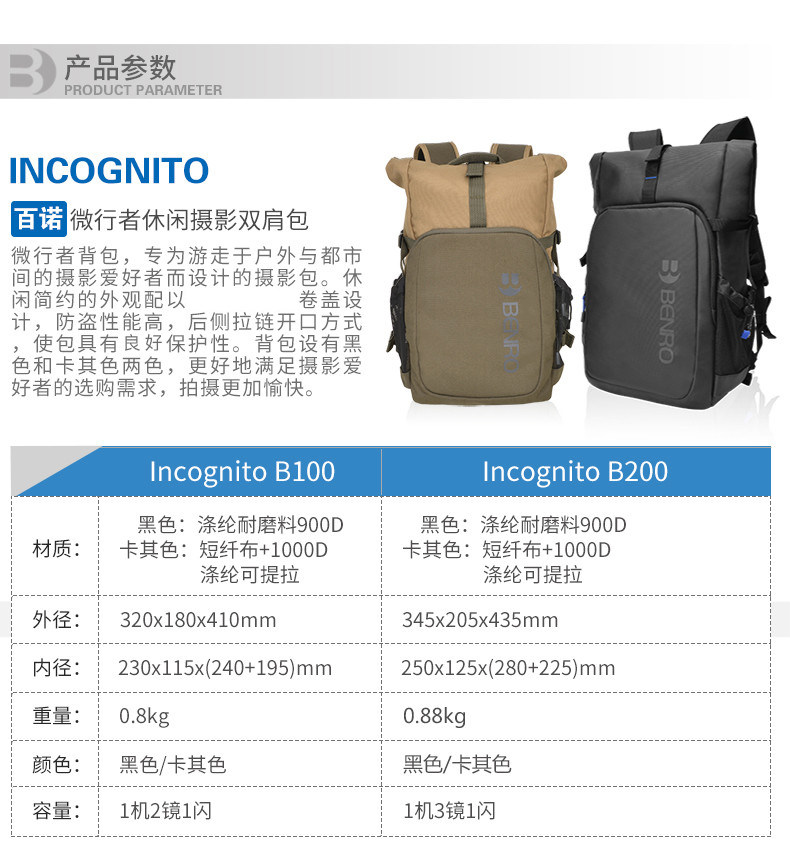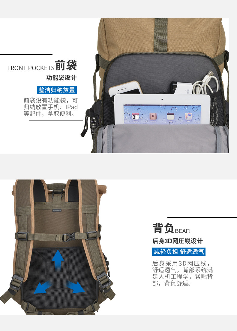 百诺 Рюкзак, сумка для фотоаппарата для отдыха, универсальный штатив, 200шт