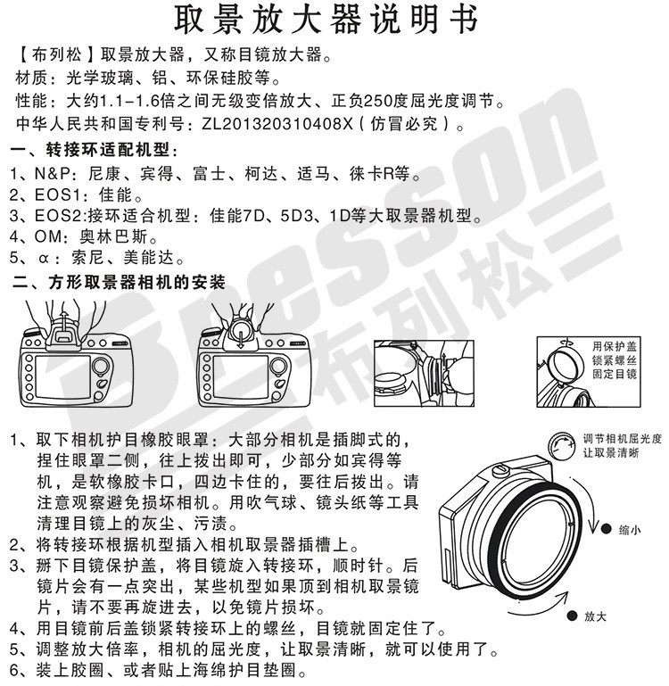 Хороший усилитель видоискателя - это как пара ярких глаз!Пожалуйста, узнайте бренд Bresson, обеспечение качества!