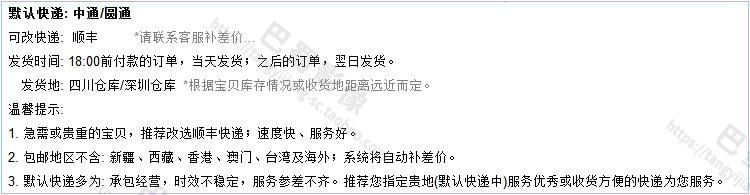 Доставка по Китаю (НЕ включена в цену):