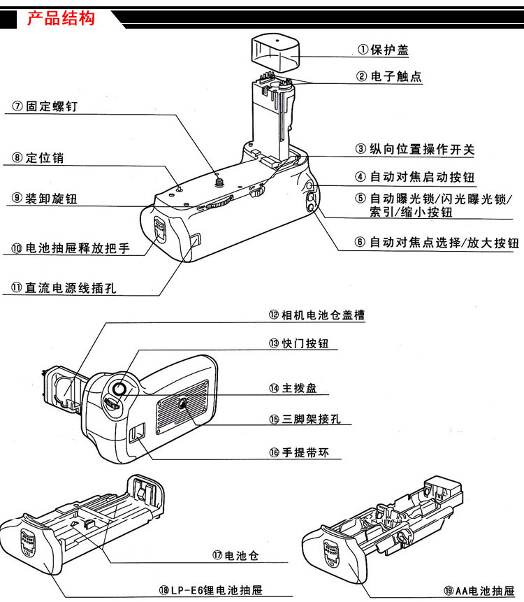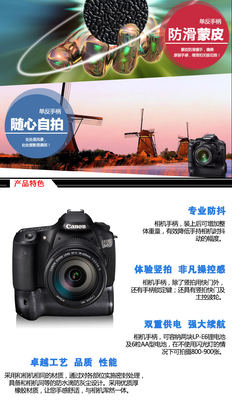 Подходит для Canon R RP 5D2 5D3 5D4 5DS/R 6D 60/70D 7D 2 80D 90D 77D 800D 550/600/650/700 D с ручкой для камеры с одним глазом, батарейный отсек