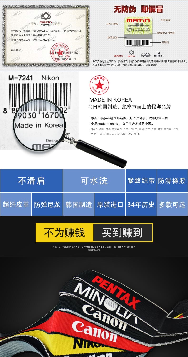 Martin's Anti -Holding and Ofor -Orfense Single -Camera Strap Presp Strap Sony Micro -single Canon Nikon Binbaida Vishing Seameremery