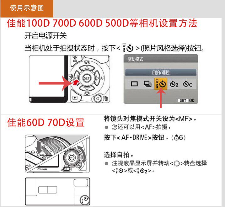 Примечание: беспроводной пульт дистанционного управления не поддерживается камерами без инфракрасных функций(Например, 40d 50d 5d 1100d 1200d 1300D и т. Д.)