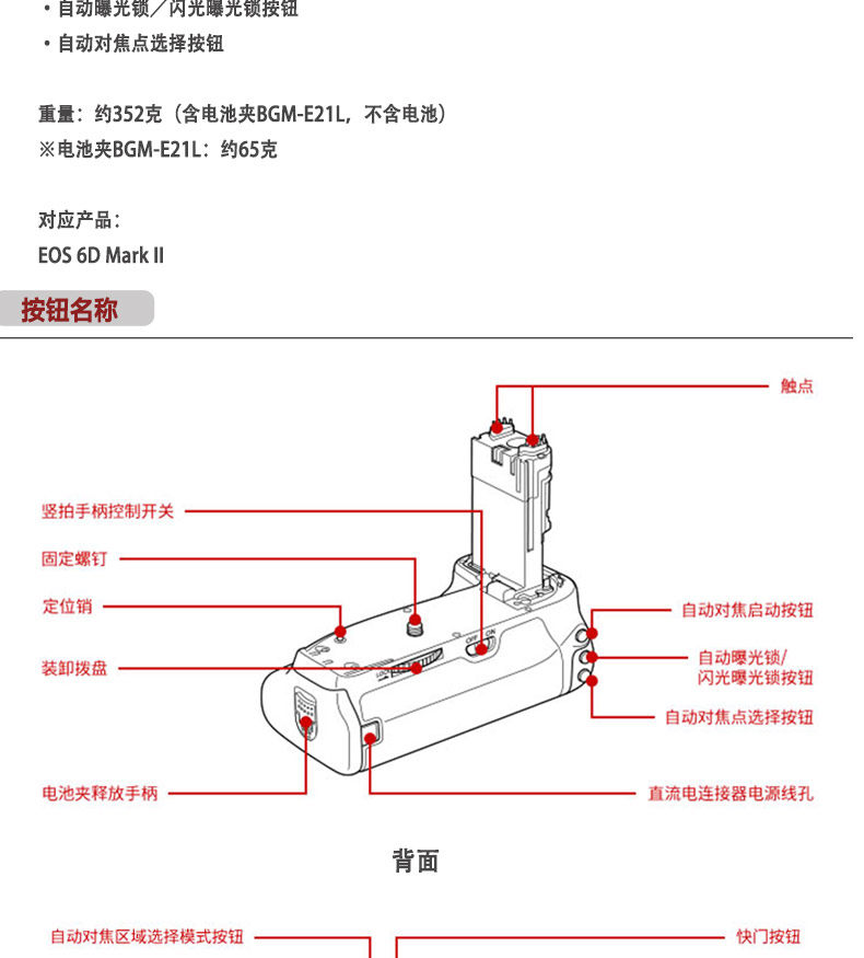 Canon, оригинальная ручка, камера, корпус батареи, E21, D2