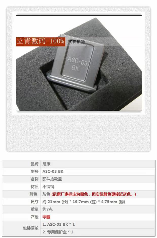 Nikon ASC-03 BK Black DFD500D610D850D7500 Горячие ботинки из нержавеющей стали.