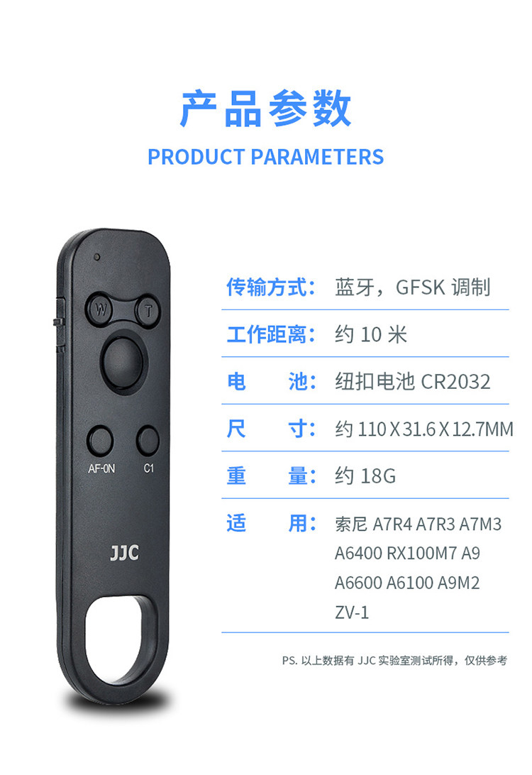 JJC подходит для Sony RMT-P1BT Bluetooth Remote Control A7C A7R3 A7M3/M4 A7R4 A6400 Black Card
