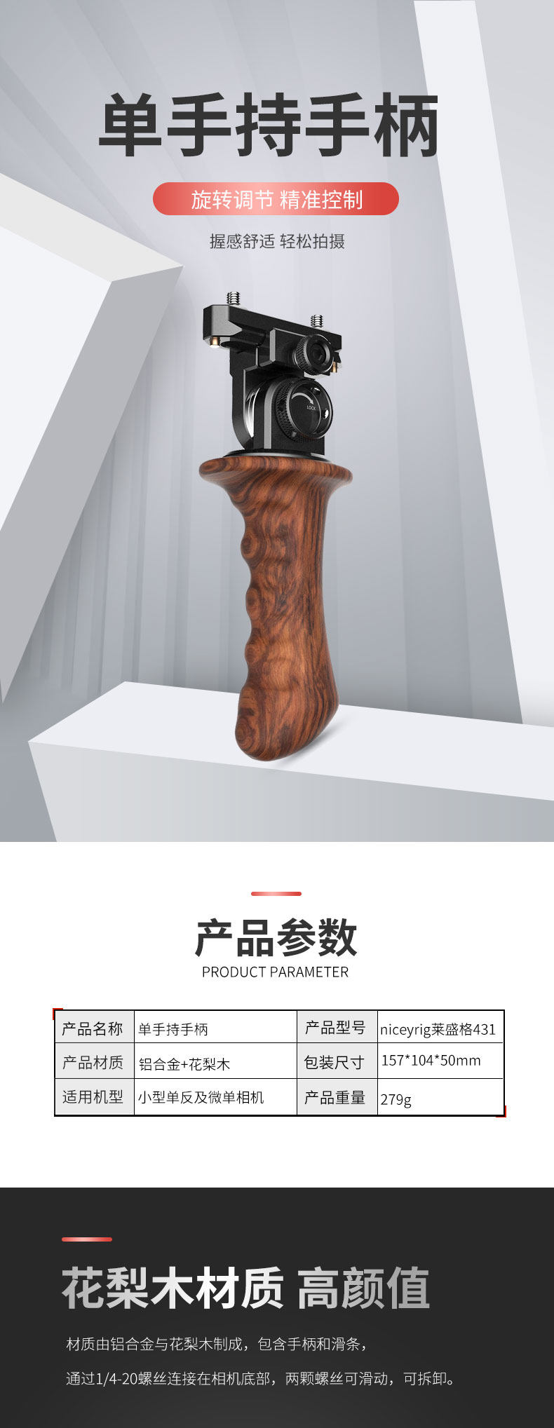 Niceyrig Ledig SLR Camera Universal Harder of Rosewood Slide Bars с одним седлением сетки 431