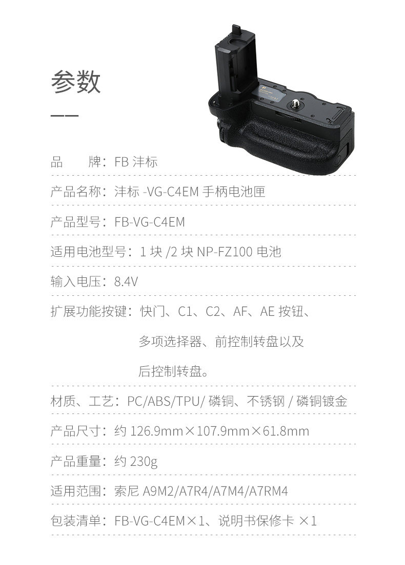 Батарейный ящик с ручкой Fengbiao подходит для камеры Sony A1 A7S3 A7R4 A7M4 micro Single A9M2 A7M3 A7RM3 A7RM4 FZ100 с вертикальной съемкой VG-C4EM C3EM