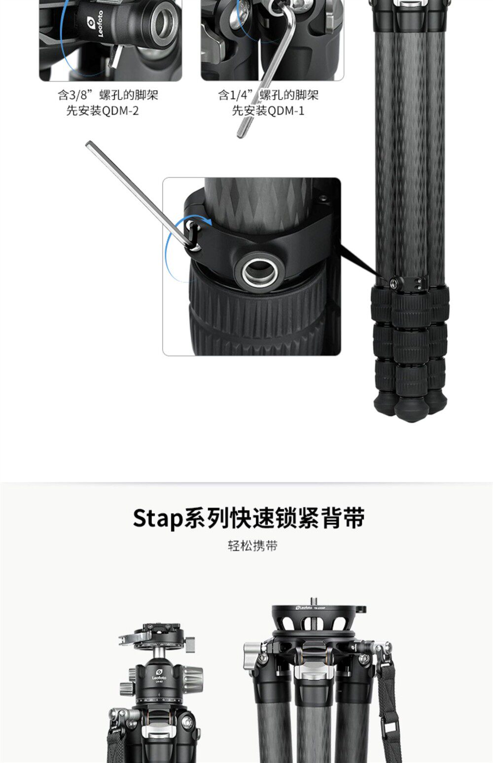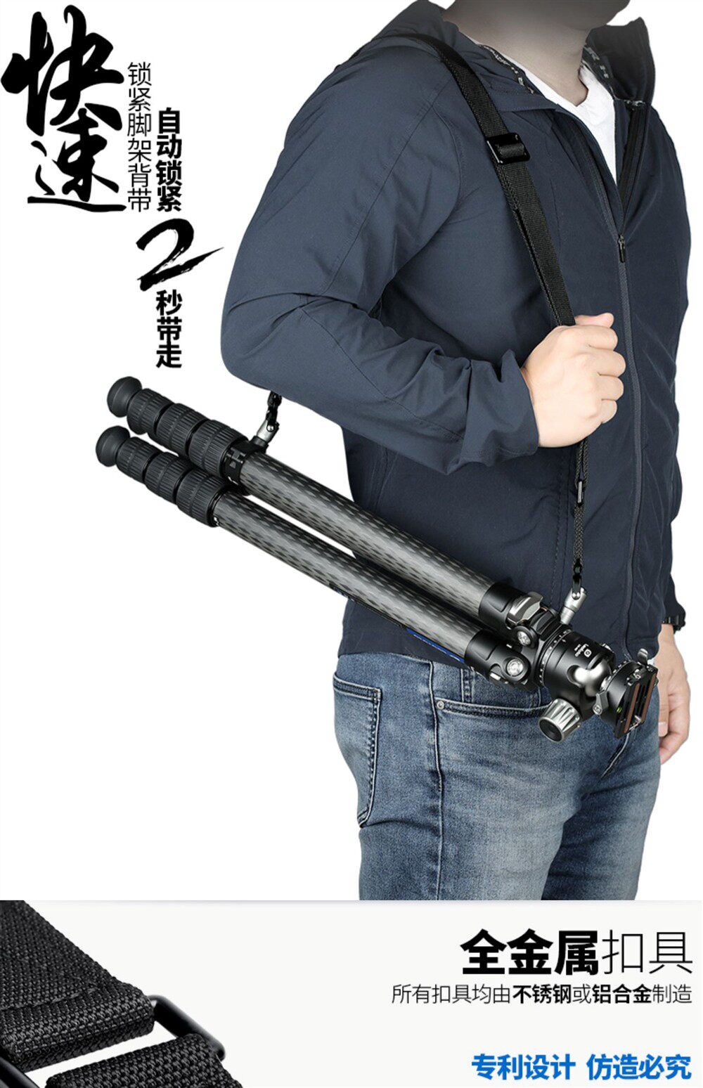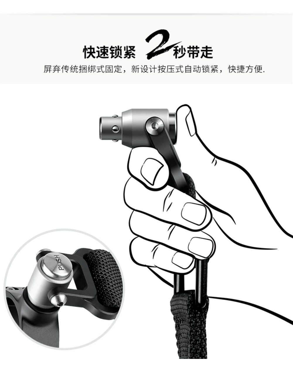 Цельнометаллическая пряжка Leofoto SP-S/SP-M быстро и автоматически фиксирует ремень штатива для зеркальной фотокамеры.