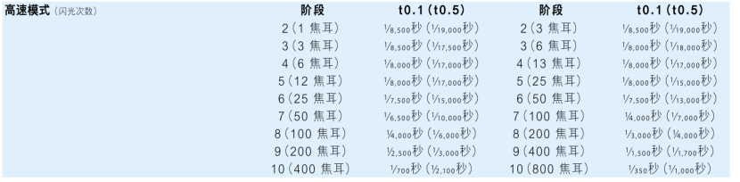 | С минимальной выходной мощностью (быстрый режим): | 1/8500 секунд (1/19000 секунд) | 1/8500 секунд (1/19000 секунд) |