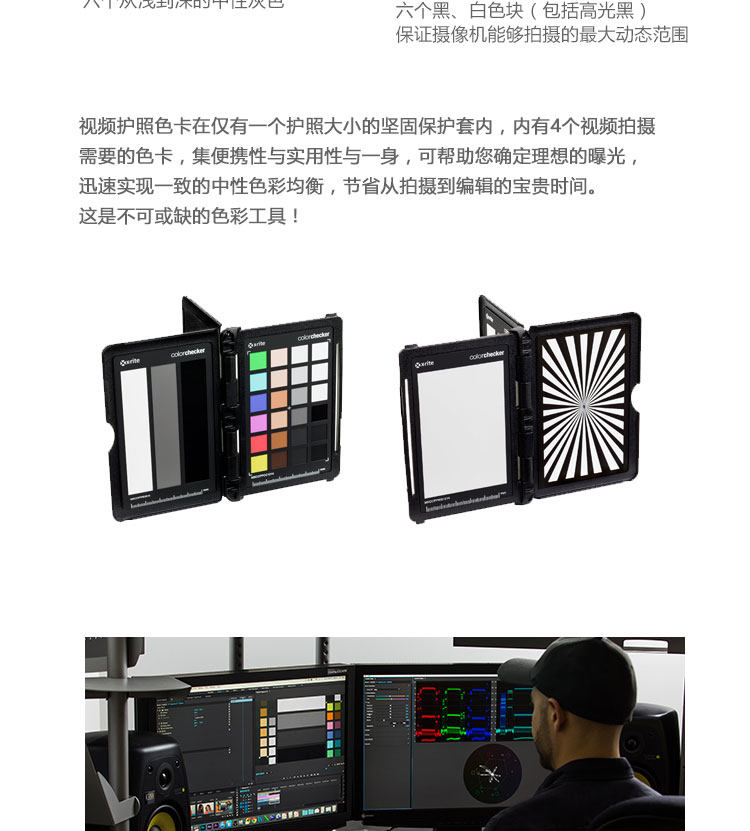 Colorchecker Passport Video - это одно“ от стрельбы в редактор&Rdquo; мощное цветовое решение, подходящее для всех продюсеров, которые хотят сэкономить время, обеспечивают последовательные и предсказуемые нейтральные начальные точки, чтобы достичь творческого внешнего вида с беспрецедентной скоростью.Носить с собой каждый раз, когда вы стреляете—— независимо от внутреннего или открытого.Вскоре он станет незаменимым цветом в вашем раннем процессе производства, съемки и редактирования.
