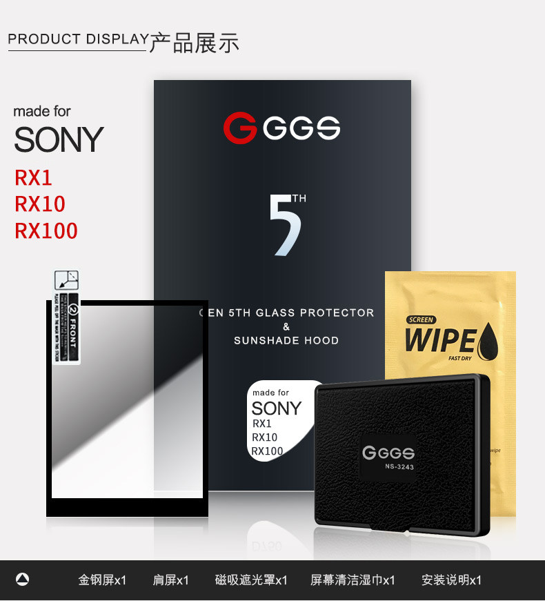 GGS Fived Generation Gold Steel Screen Sony Black Card RX100II III IV IV M3/M4/M6/M5 RX10 RX1R RX10R RX10M3/M4.