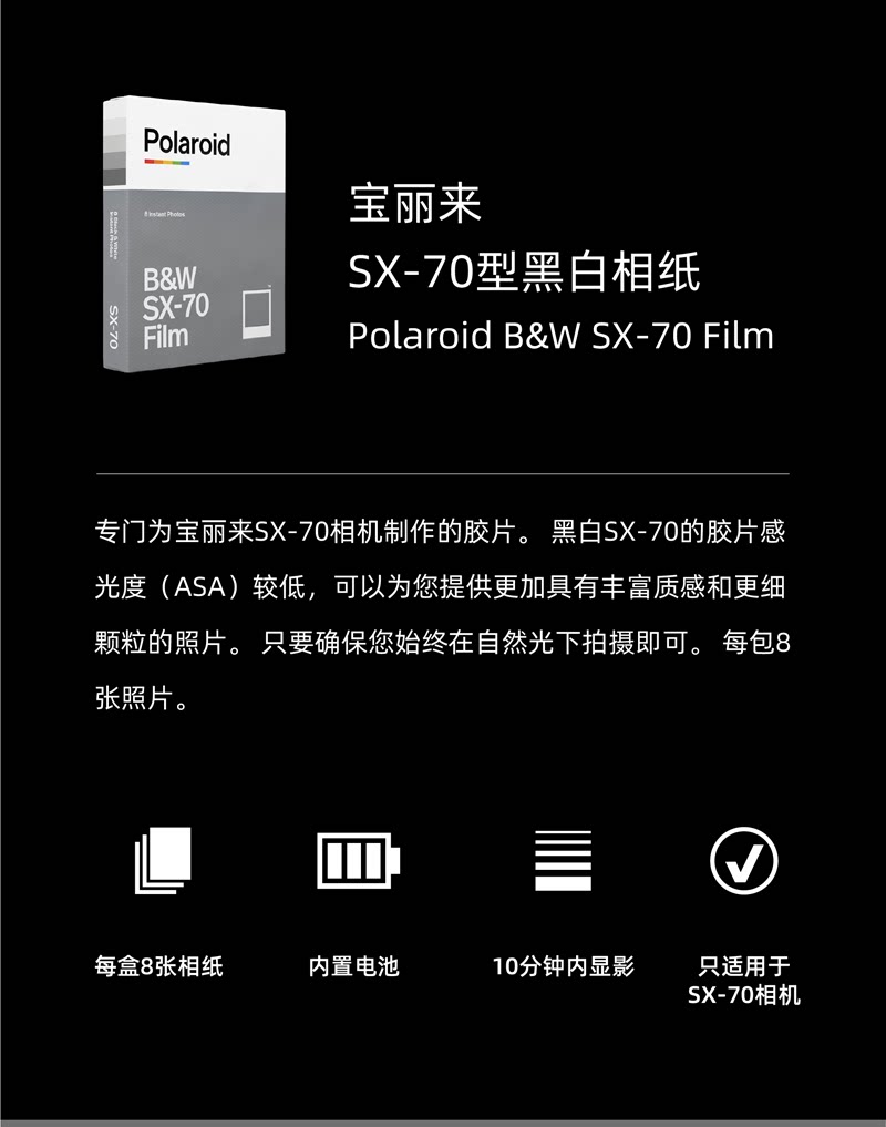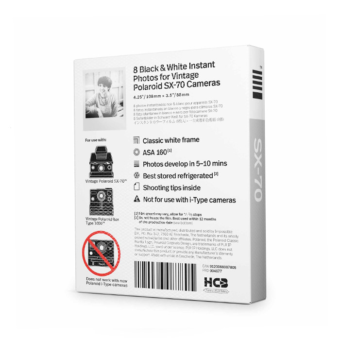 Поляроидный поляроид SX-70 Черно-белая фоторепения устанавливает пленку 8 штук из 8 штук 22 года 02-19 Spot