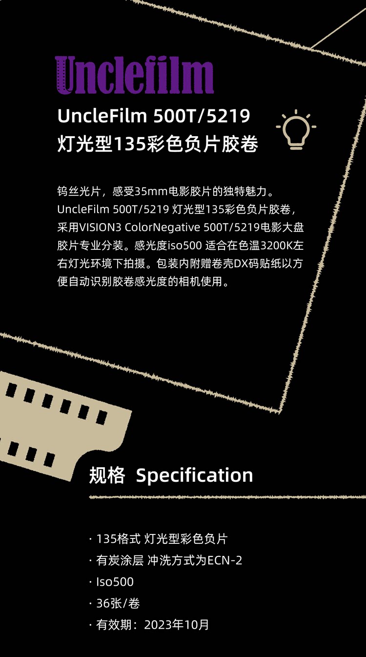 Decklefilm135 Color Film Film 5219 500T Light Oftion Film 36 с DX Code Ecn2 Prinse