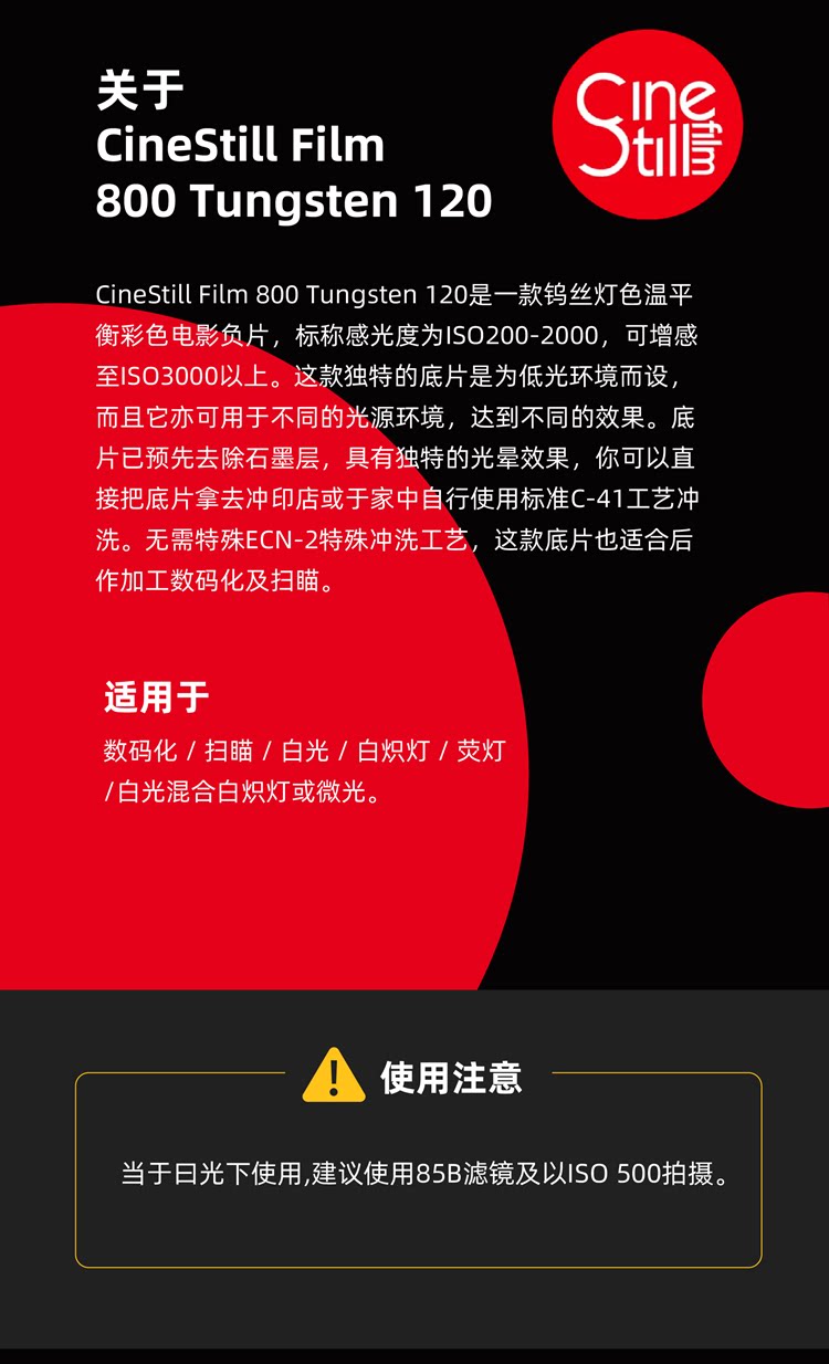 American Cinestill 800tunsten120 Color Film Film Film Light Oftion Film C41 Flushing Spot