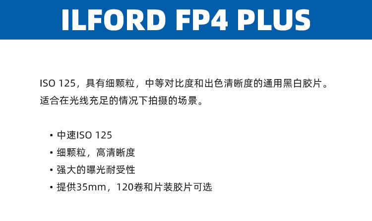Британский оригинальный Ilford FP4 Plus125 Черно -белый фильм 120 фильм 23 марта 23 года