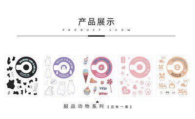 - 5 наборов десертных наклеек животных