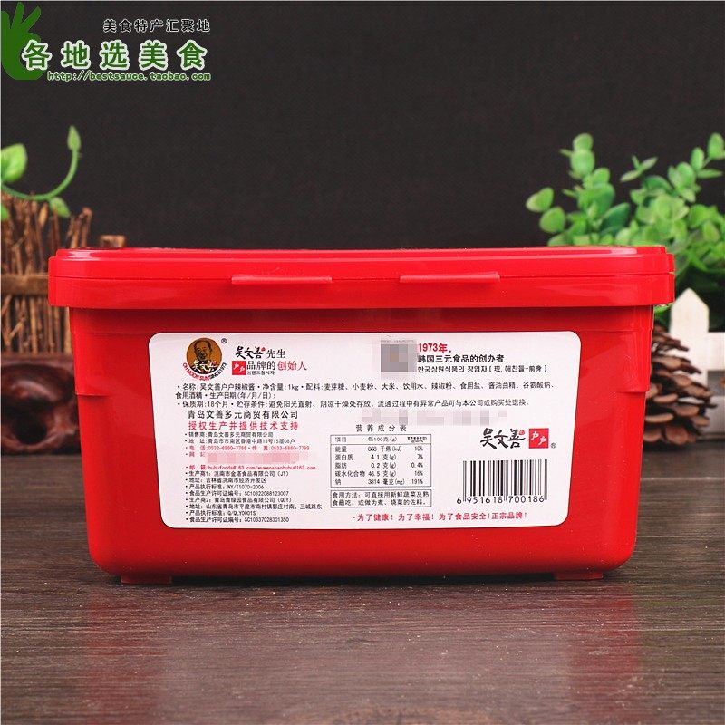 Wu Wenshan Домохозяйства соус чили 1 кг*2 коробки корейского каменного горшка соуса бибимбап горячий жареный рисовый пирог Соус корейский горячий горшок приправы