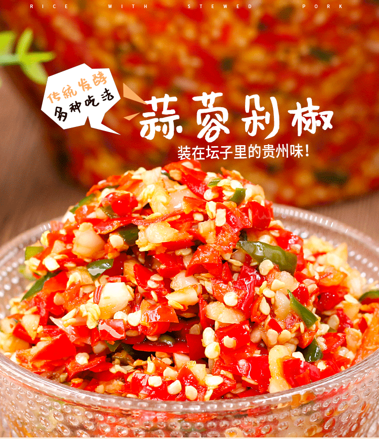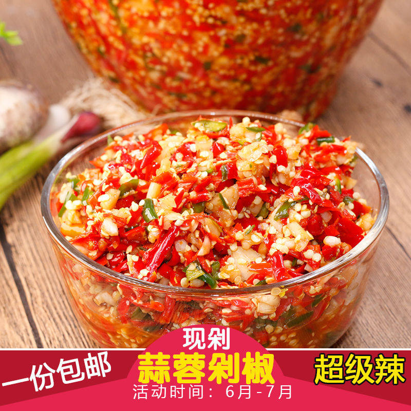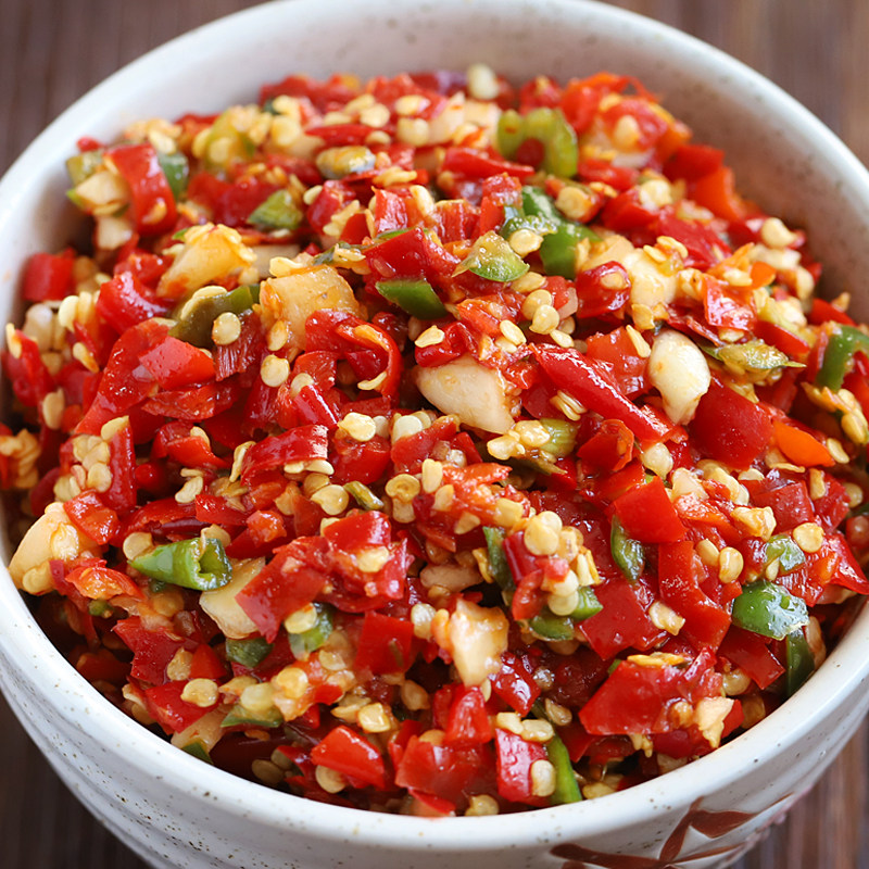 Zunyi, Guizhou, Специальный острый чесночный соус из чили, нарезанный фермерский дом острый блюда, зеленый и красный нарезанный перец рыба