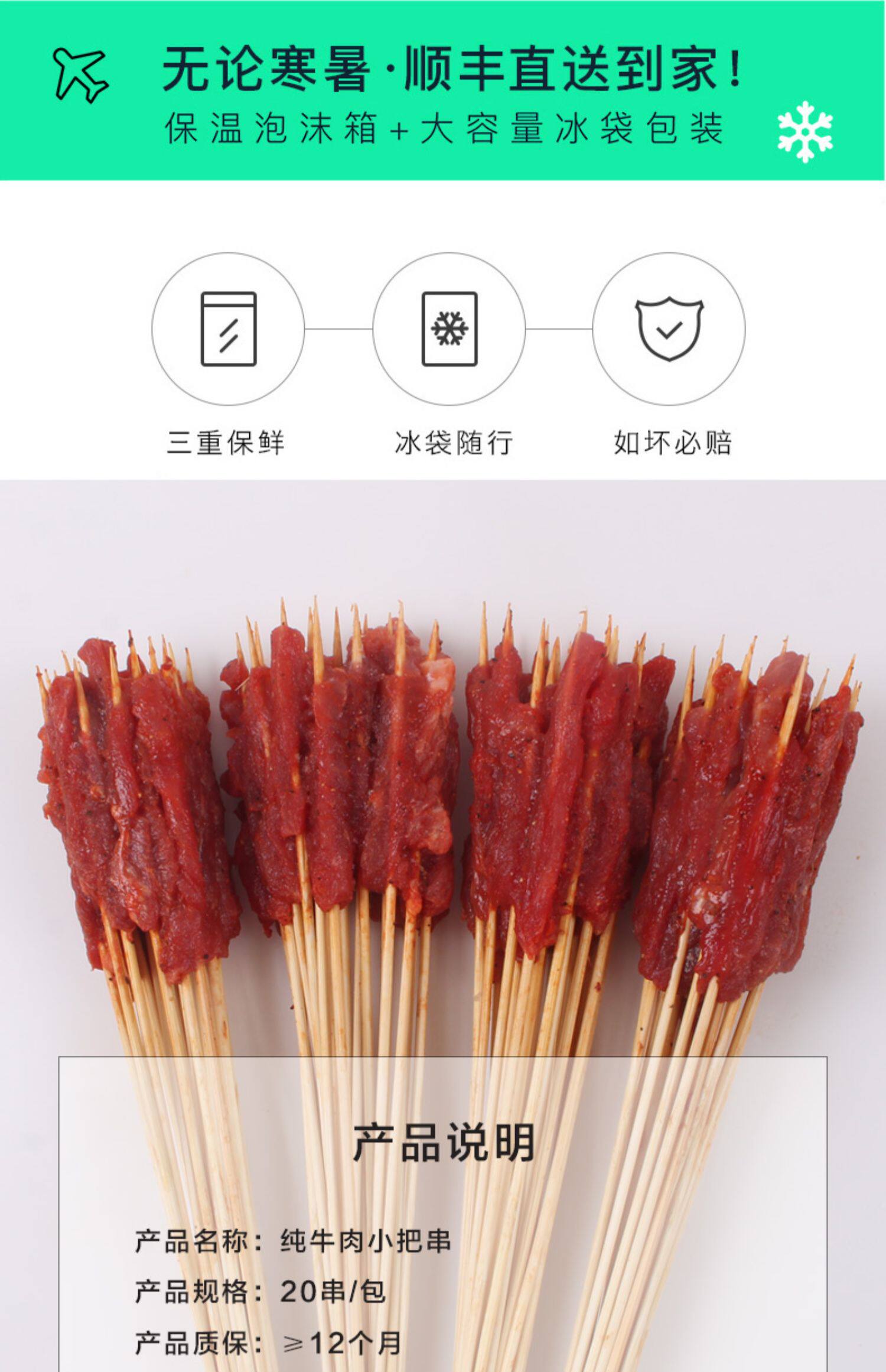 Чистая говядина маленькие шампуры полу -направленные ингредиенты для барбекю на открытая рука держат шампуры 20 шампуров/сумки