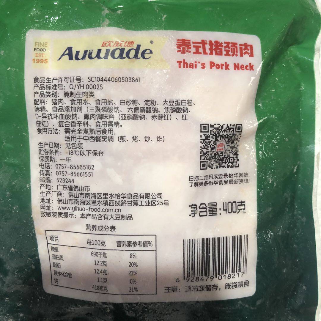 Owa -Thai -стиль свиная шея копченая маринованная свиная свиная сосна мясо освежает гладкое и гладкое 400 г