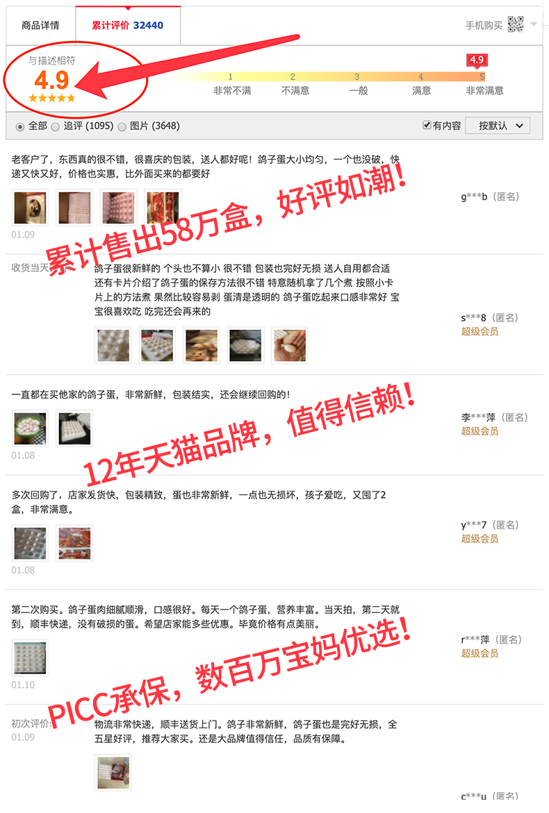 иногдаНужно выстраивать,Старые клиенты, которые сломали еду, сообщите об обслуживании клиентов служению обслуживанию клиентовПримечаниеСущностьЯйца голубя могут быть приготовлены с низкой температурой или напрямую на пару на поверхности риса, что не влияет на потребление. Если яичная жидкость серьезно потеряна, свяжитесь с обслуживанием клиентов, чтобы вернуть компенсацию.Кроме того, это нормально, чтобы маленькие и маленькие яйца голубей были маленькими и маленькими.Мой сын Сюй Мэн родился в ноябре 2011 года. Фотография сделана 17 июня 2013 года. На момент съемки ему было 19 месяцев. Он отказывался есть яйца с зеленой скорлупой с апреля и каждое утро съедал два вареных голубиных яйца.Когда мой сын ест это, я радуюсь!
