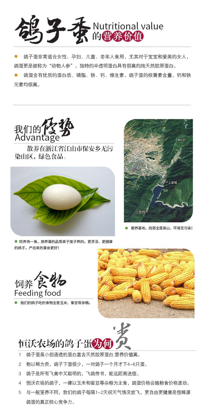1. Голубиные яйца“Хенгво ферма”Прямые поставки, с протоколом испытаний, выданным Муниципальным центром контроля качества пищевых продуктов, вы можете покупать с уверенностью!