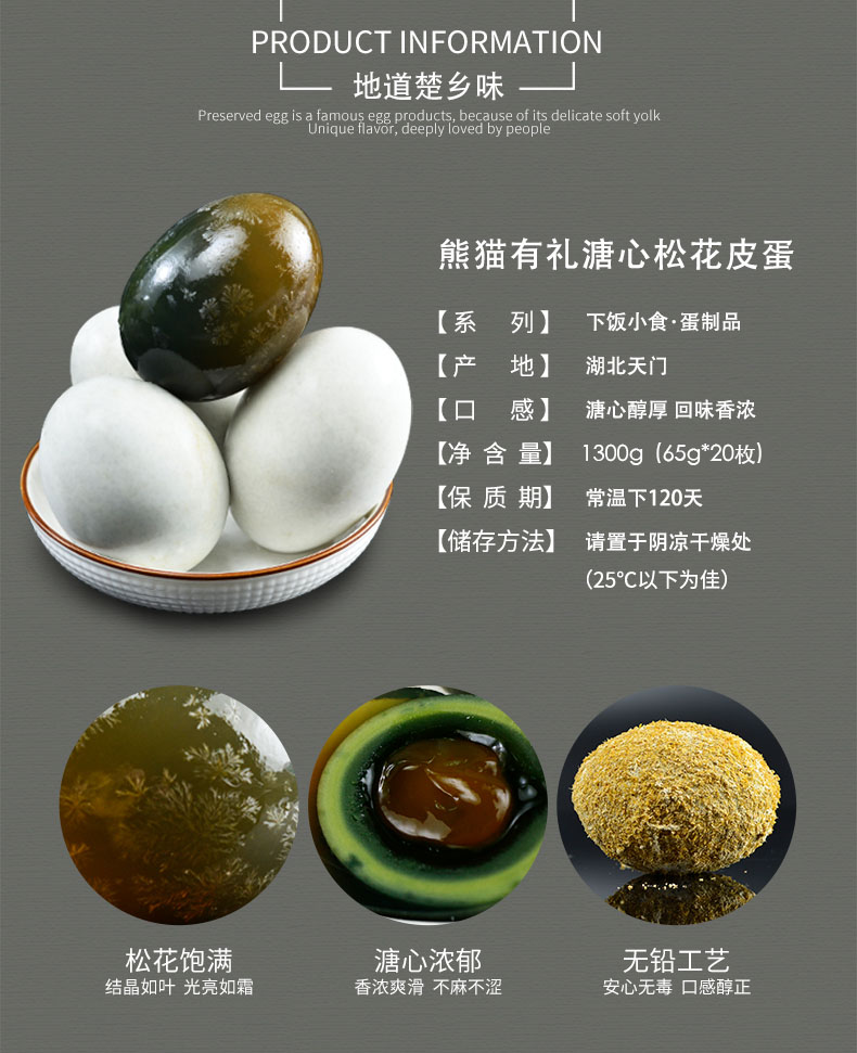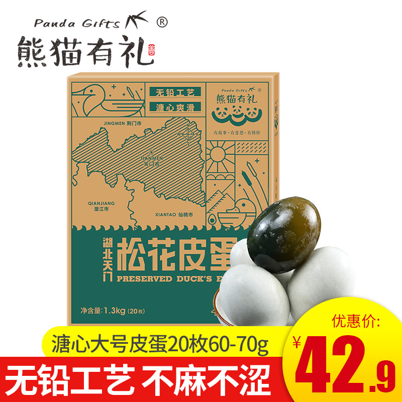 Панда вежливая, без свинца, большие яйца, сосны, яйца, аутентичная специальность Hubei Большие консервированные яйца 20*65 г