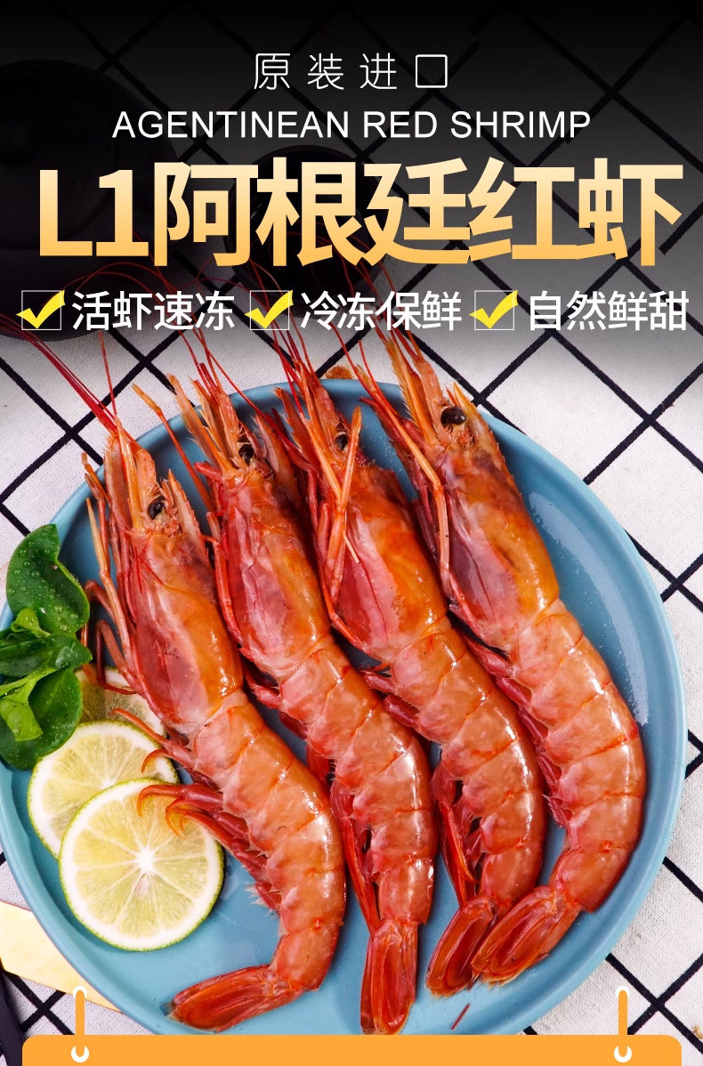 Аргентинские красные креветки L1 Гранд -красные креветки морепродукты водные продукты импортированный гранд Супер Грамма Свежая замороженные замороженные замороженные замороженные