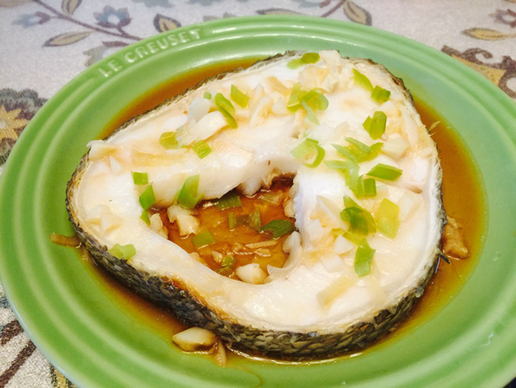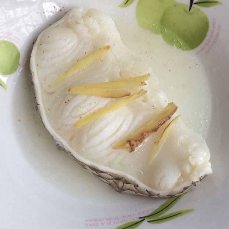 (1) Треска была полностью оттаивала и положила в тарелку, (2) залейте горячую воду примерно на 80 градусов вдоль края трески, (3), а затем шкалы рыбы сбрасываются рукой.