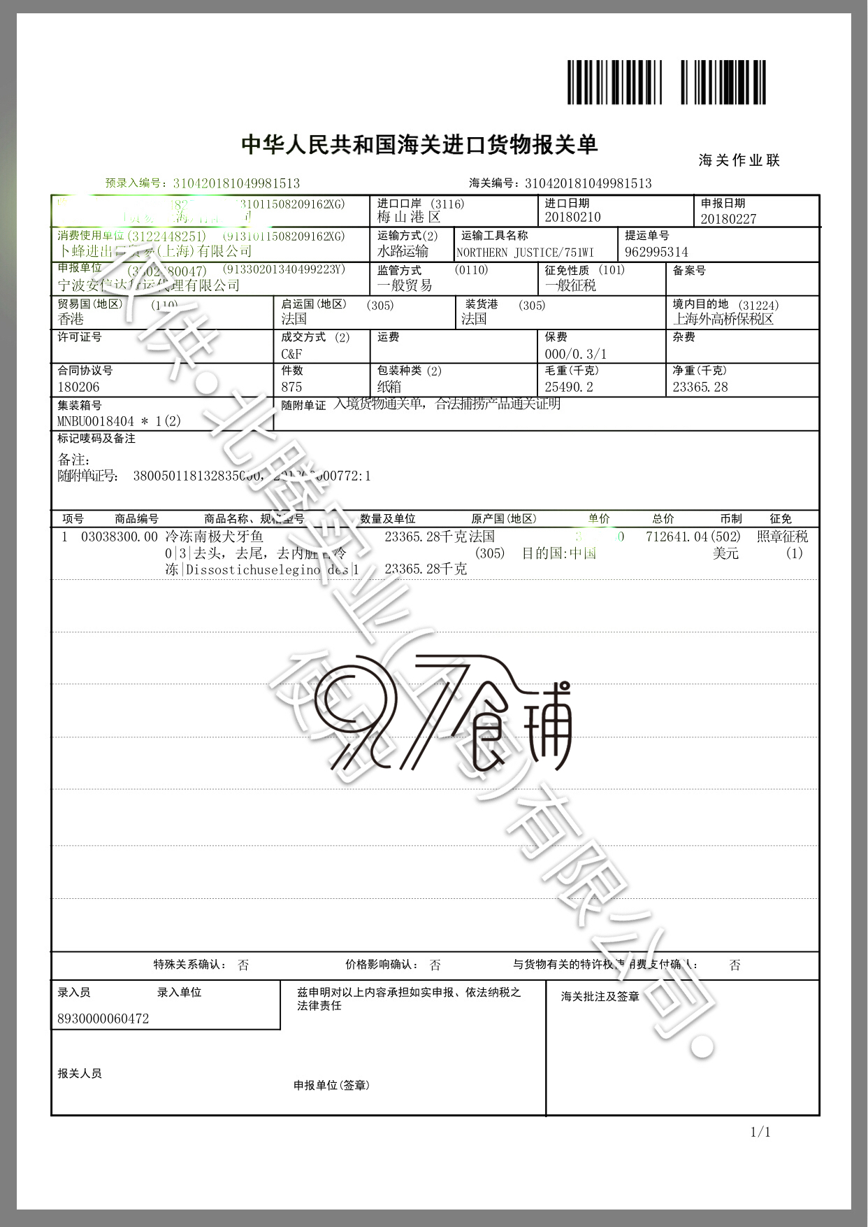 Ниже приведено форма декларации и сертификат карантина,Все обращают внимание на место происхождения, - это ФранцияЭто французский остров, который ближе к Антарктическому кругу.(Дата документа не представляет последнюю дату партии)