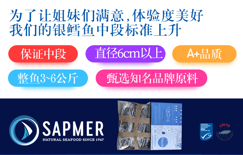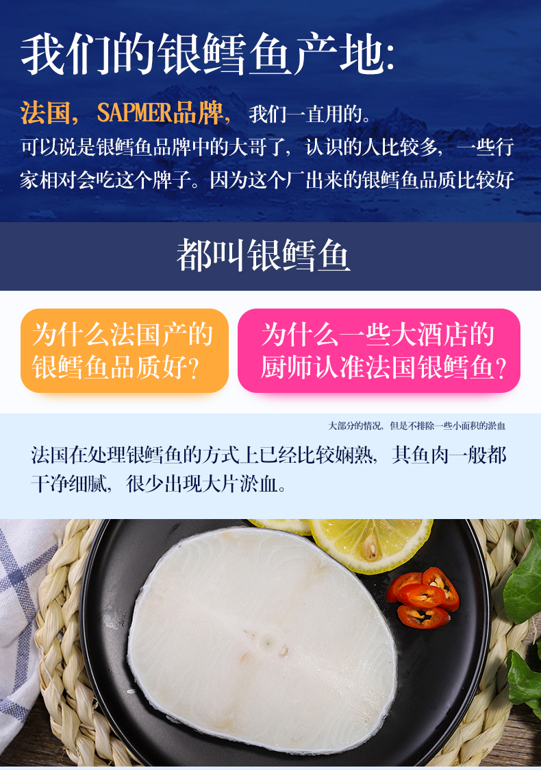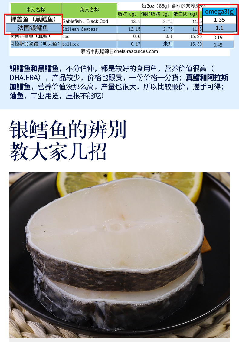 Импортная французская рыба треска в середине -сечение 500 г свежую серебряную снежную рыбу целую нарезанную нарезанную глубоковод