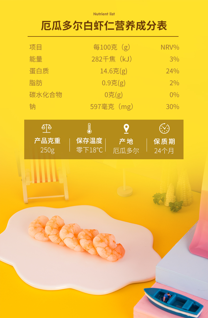 渔和鱼 Эквадор белые креветки, детская добавка пищи свежее ледяное замороженное ur Импортированная судоходство.