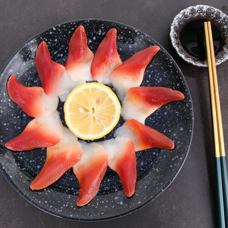 Канада импортированная арктическая кровать сашими m код нарезал 26 таблеток, чтобы снять органы, отправить соевый соус горчицы и есть морепродукты
