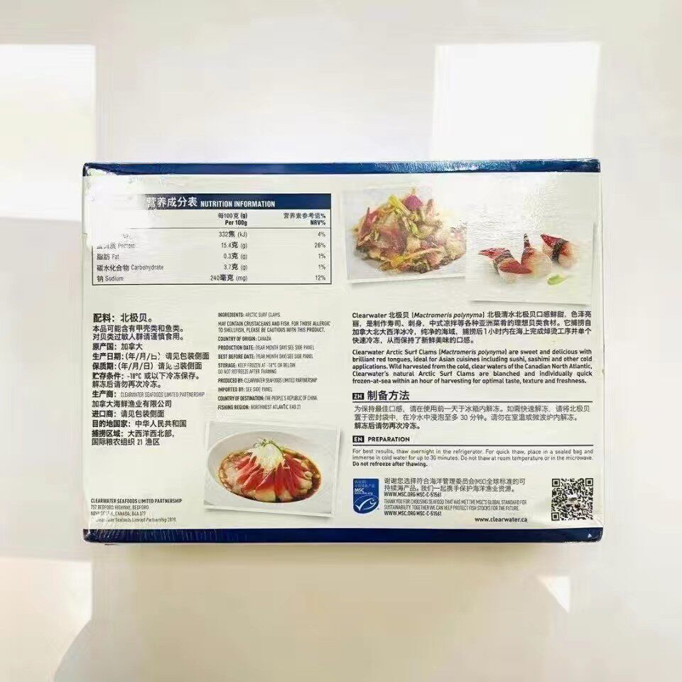 Clearwater Canada Импортированные морепродукты Arctic Shell S-класс Sashimi 1000G готовый к употреблению оригинальная арктическая оболочка