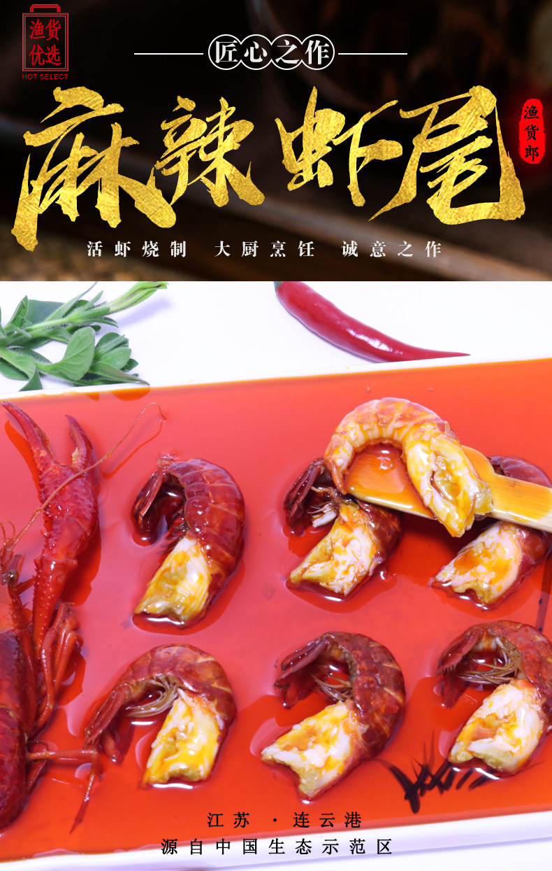 [5 мешков] Пряные хвосты раков Приготовленные закуски, мгновенный свежий горшок маленький морепродукт сетка красный маленький шарик креветок