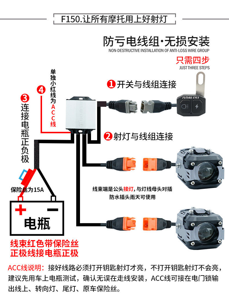 Future Eye F150 Мотоцикл Съемка фонаря укладки света модифицированная внешняя легенда.